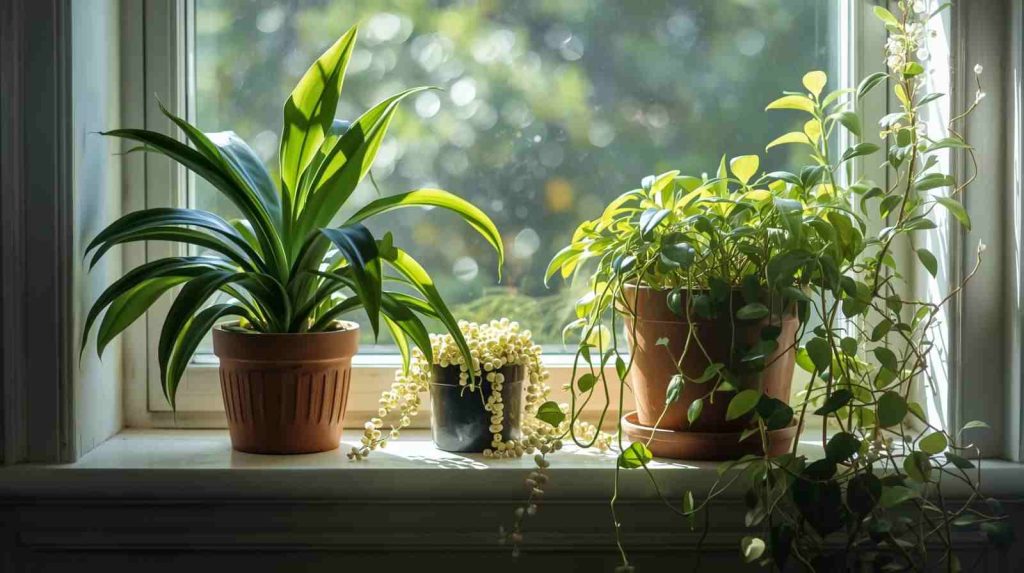Three plants adorn my bedroom window sill: a ZZ Plant ($25 from Trader Joe’s), which has doubled in size over the past two years; a rubber plant ($15 from Home Depot), which adds height; and a string ($12) of pearls that hangs down.