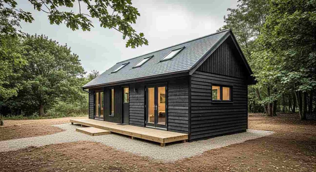 In 2025-2026, the Japanese forest cottage will be the most popular trend in UK architecture and self-build forums. The Japanese forest cottage is based on the wabi sabi philosophy, which finds beauty in imperfections and impermanence. It uses natural materials to weather and change gracefully instead of fighting the elements. The charred wood exterior is completely maintenance-free and will only deepen in character with time.