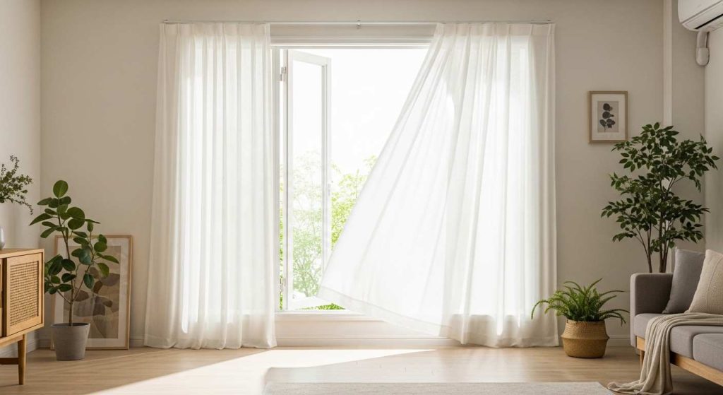 These light curtains add movement to the room and make it appear more spacious.