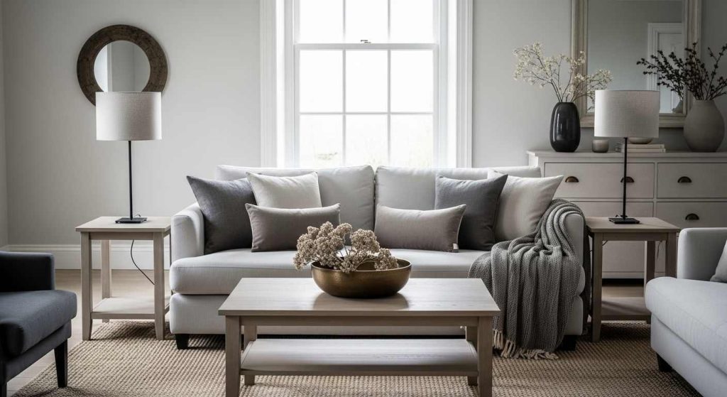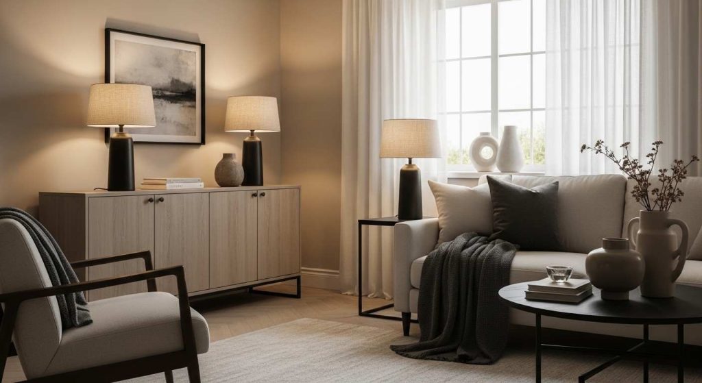 Darker accents such as black lamp bases or bronze hardware will create a subtle contrast. These elements add visual interest and ground the design without affecting harmony.